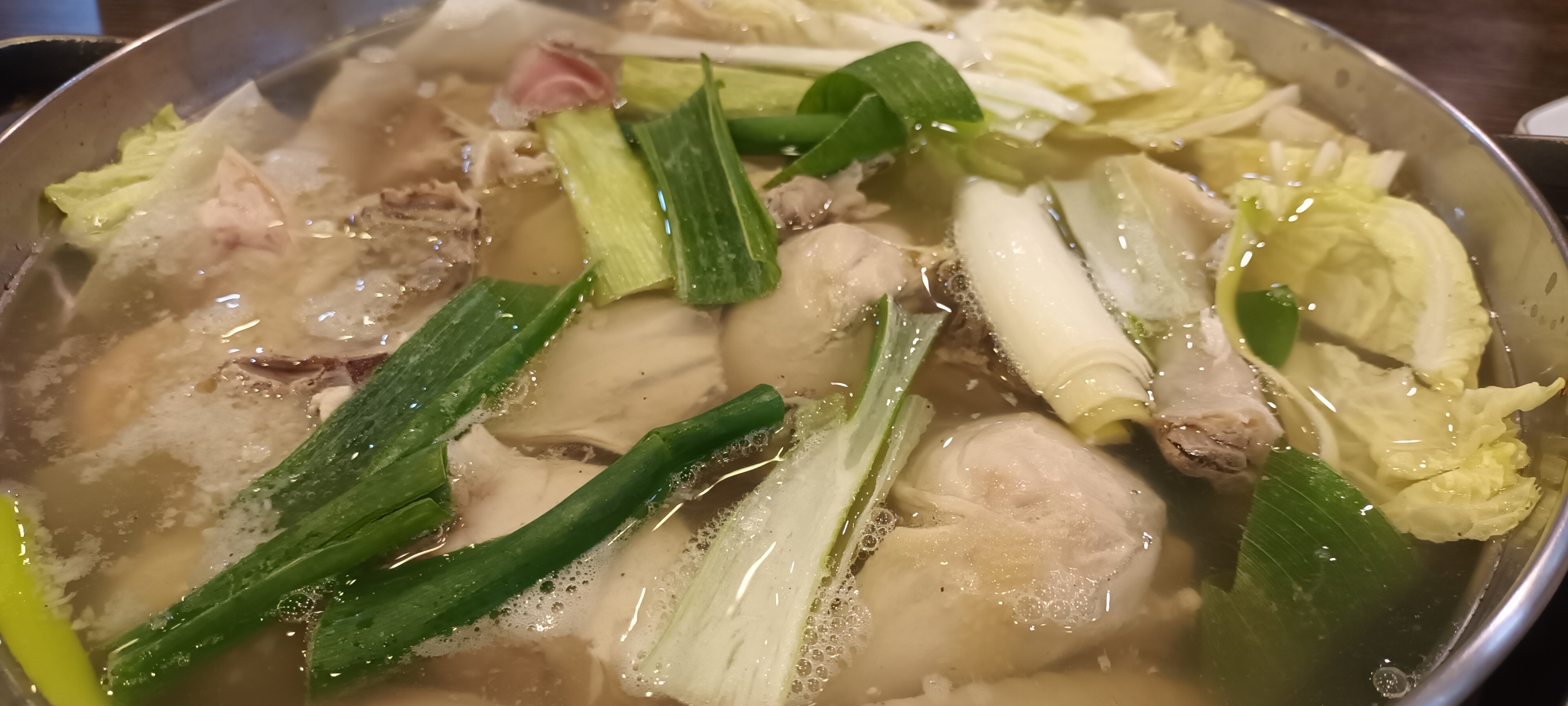 무엇보다 뜨거운 물에서 우려나오는 닭국물이 아주 매력적입니다. 우선 만두와 야채부터 넣고 끓이면서 먹고 닭고기가 읽을 때가 되면 하나씩 골라 먹습니다.
