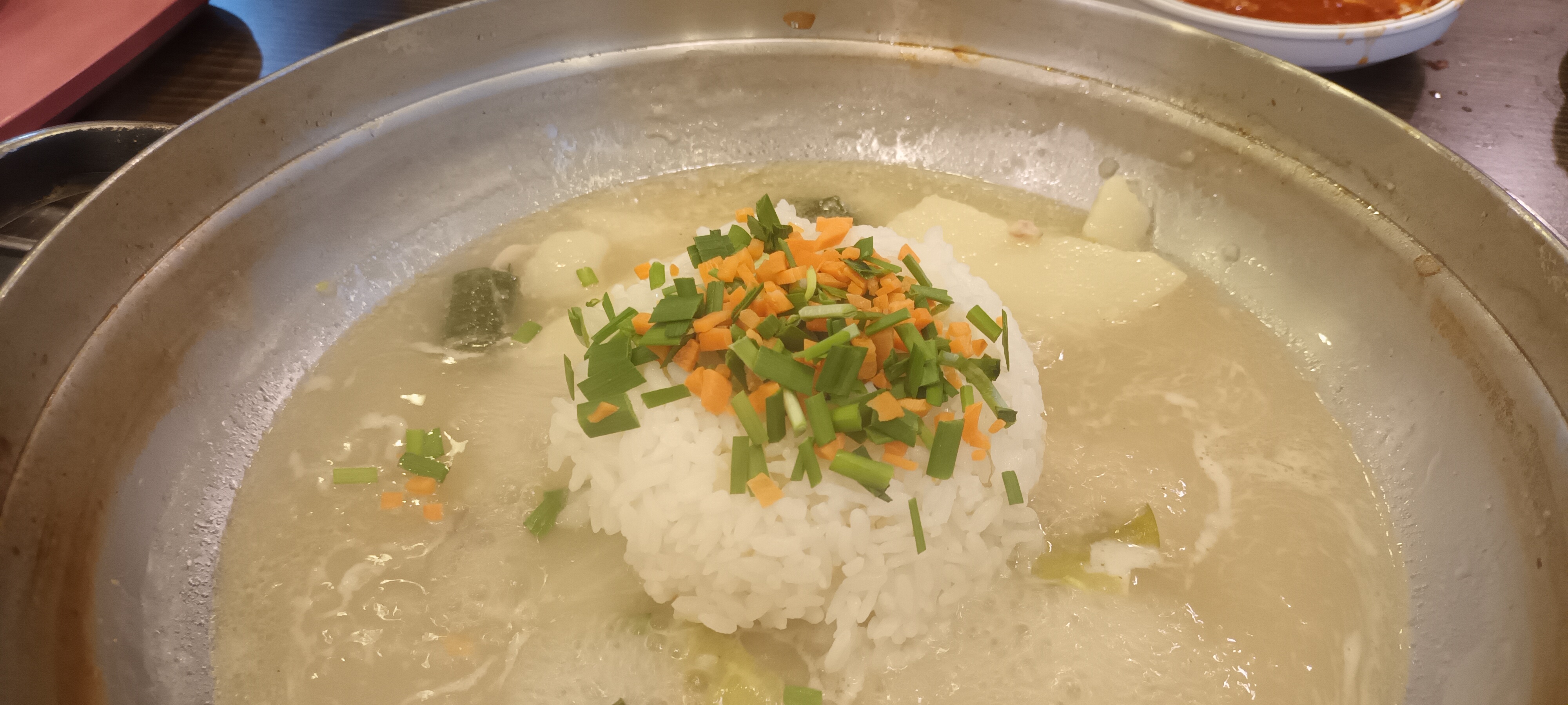 무엇보다 뜨거운 물에서 우려나오는 닭국물이 아주 매력적입니다. 우선 만두와 야채부터 넣고 끓이면서 먹고 닭고기가 읽을 때가 되면 하나씩 골라 먹습니다.