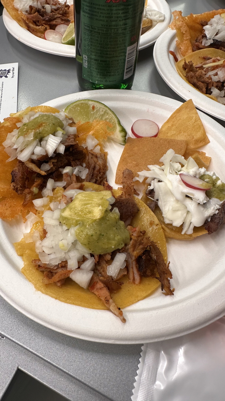 트롬포라고 불리는 돼지고기를 겹겹이 쌓아 올려 그릴에 파인애플과 함께 구워낸 고기를 옥수수반죽 또띠야에 올려 완성한 음식입니다. 단순한 음식이지만 다양한 향신료와 특별한 조리법으로 만들어 중독성이 강해 우리의 입맛에 잘 맞는 음식입니다.